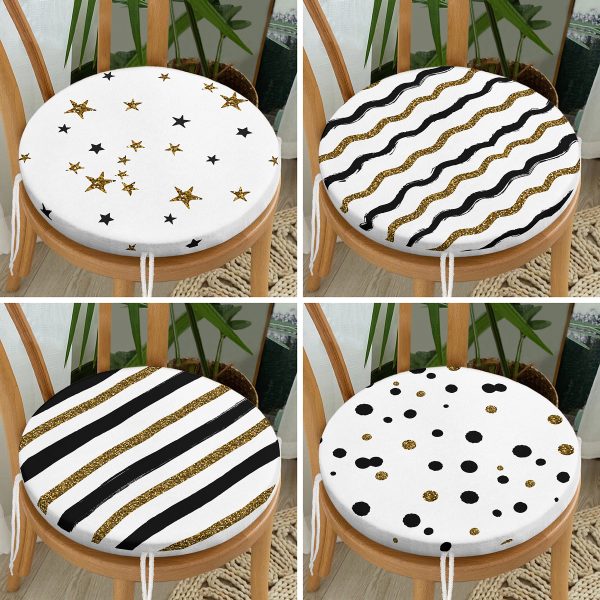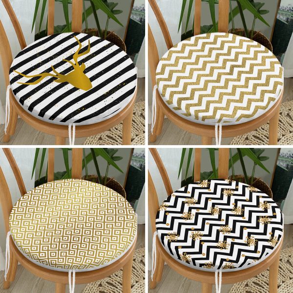 4’lü Beyaz Zemin Üzerinde Gold Detaylı Modern Yuvarlak Fermuarlı Sandalye Minderi Seti