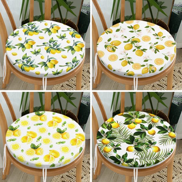 4’lü Limon Temalı Özel Tasarım Yuvarlak Fermuarlı Sandalye Minderi Seti