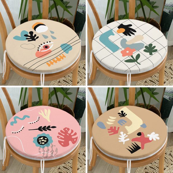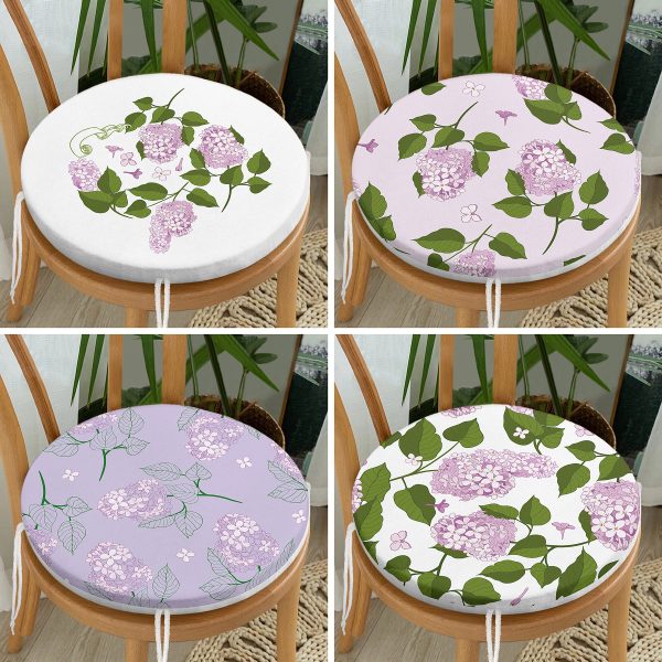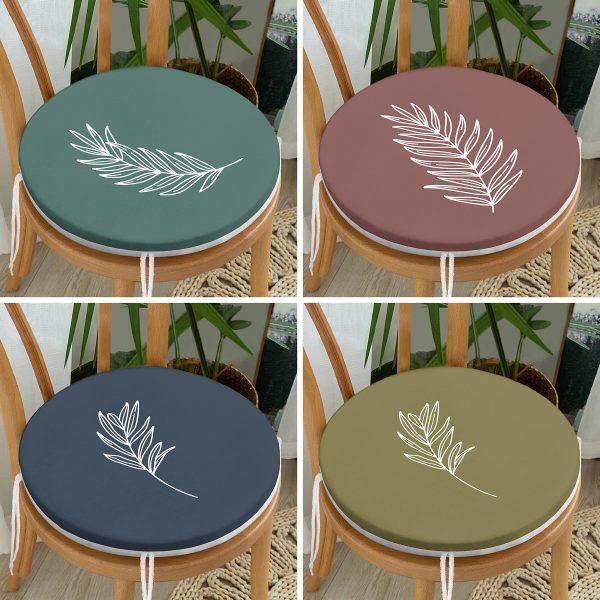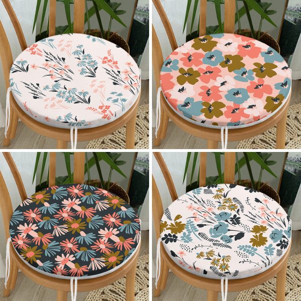 4’lü Renkli Zemin Beyaz Çiçek Çizimli Yuvarlak Fermuarlı Sandalye Minderi Seti