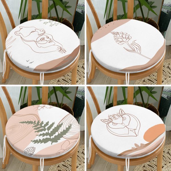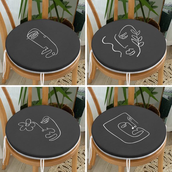 4’lü Renkli Zemin Üzerinde Onedraw Çizimli Modern Yuvarlak Fermuarlı Sandalye Minderi Seti