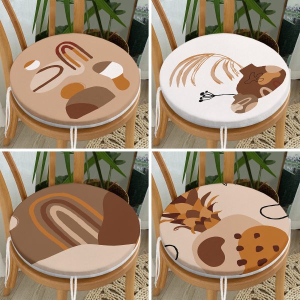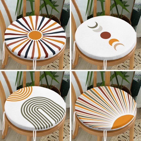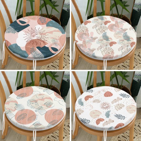 4’lü Minimal Tasarımlı Bohem Dijital Baskılı Yuvarlak Fermuarlı Sandalye Minderi Seti