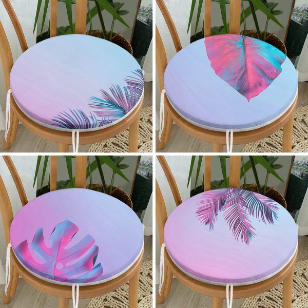 4’lü Pembe Zeminde Gül Ve Yaprak Desenli Yuvarlak Fermuarlı Sandalye Minderi Seti