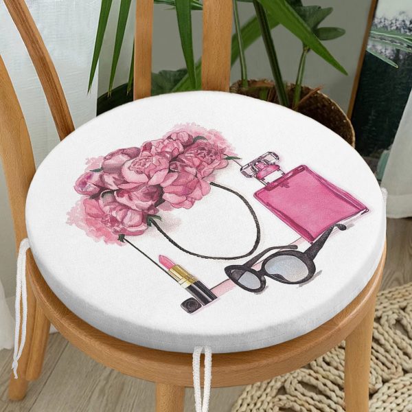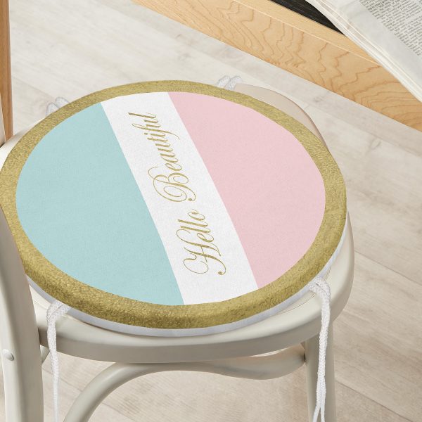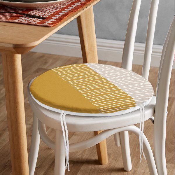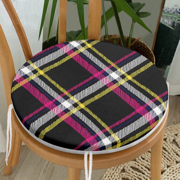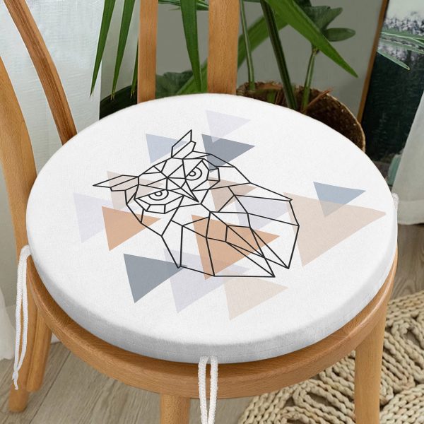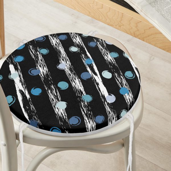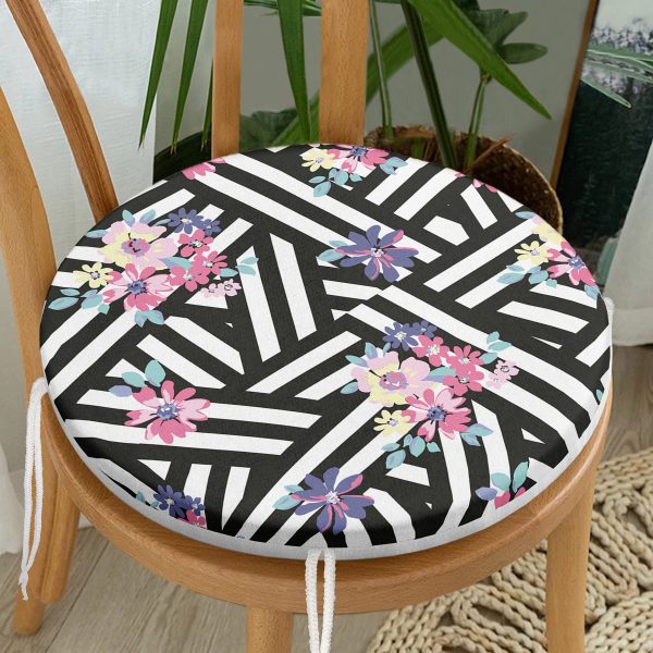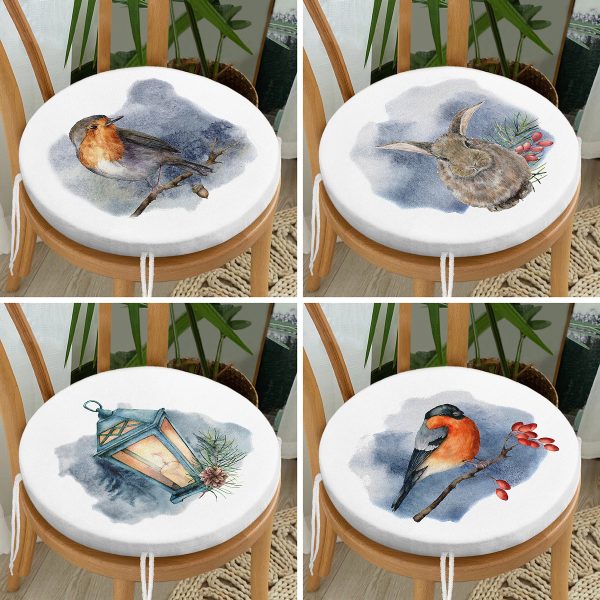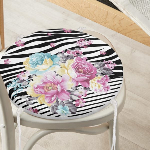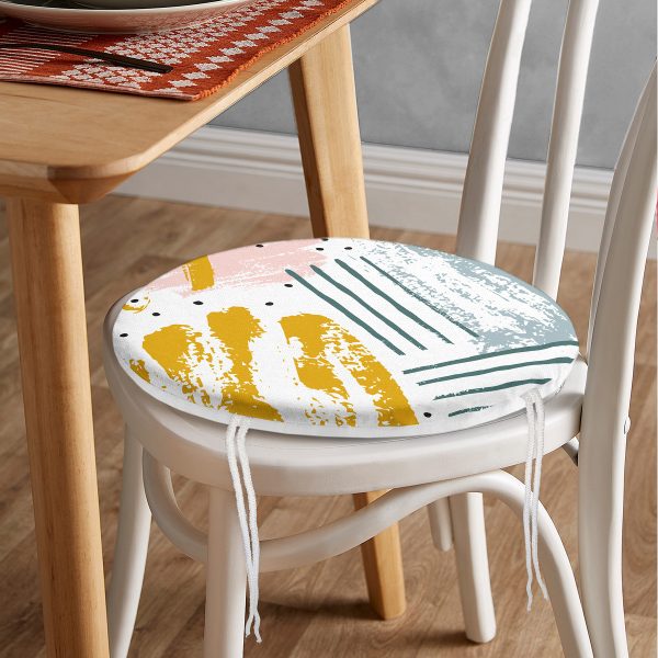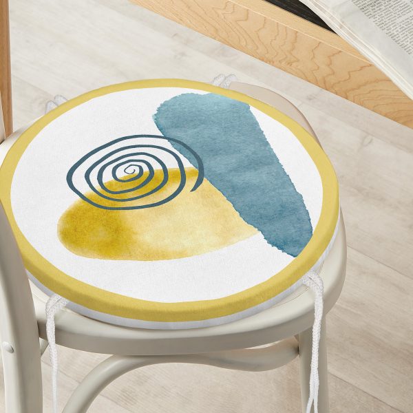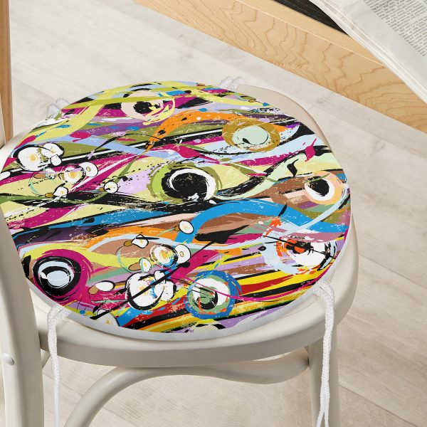 4’lü Renkli Zemin Üzerinde Onedraw Çizimli Modern Yuvarlak Fermuarlı Sandalye Minderi Seti