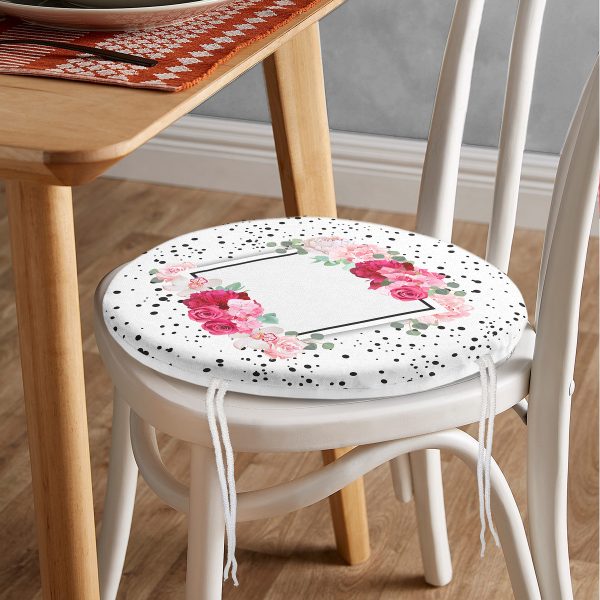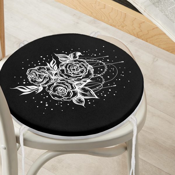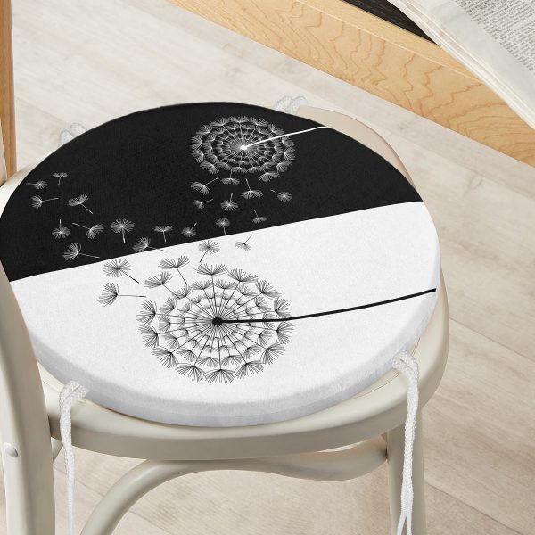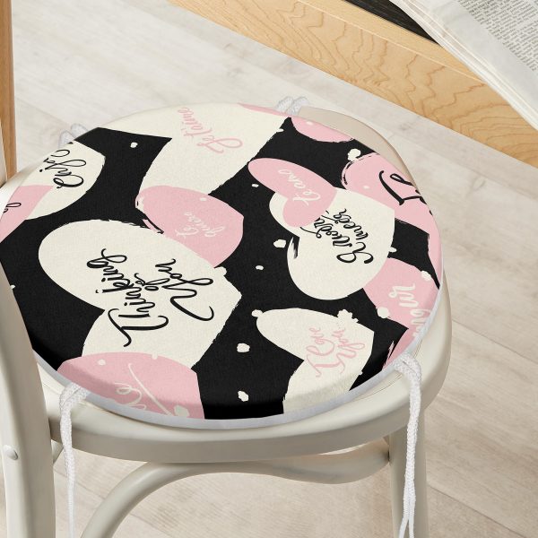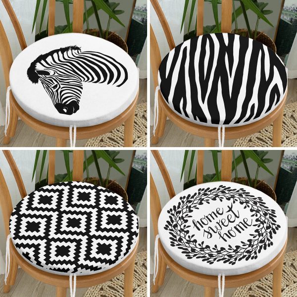4’lü Siyah Beyaz Home Sweet Temalı Yuvarlak Fermuarlı Sandalye Minderi Seti