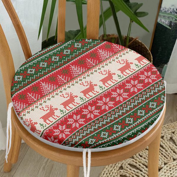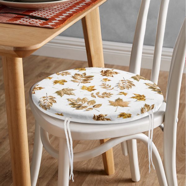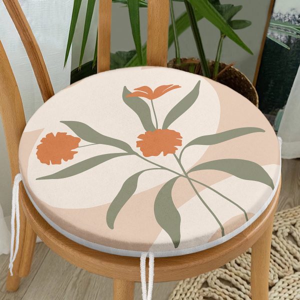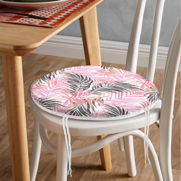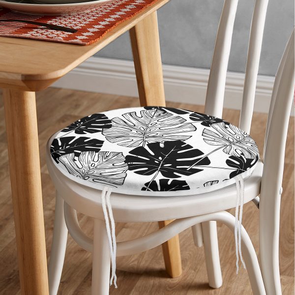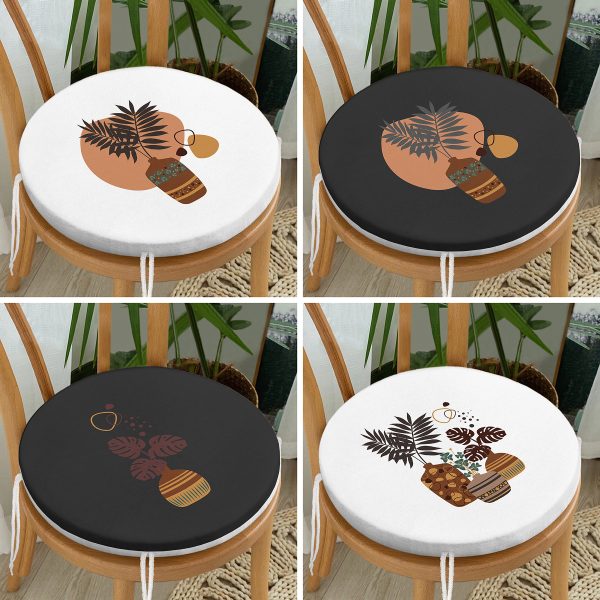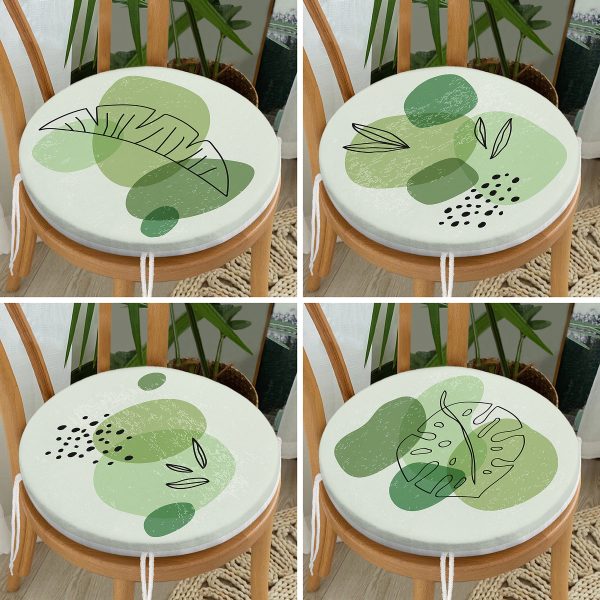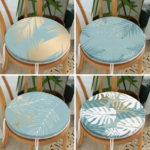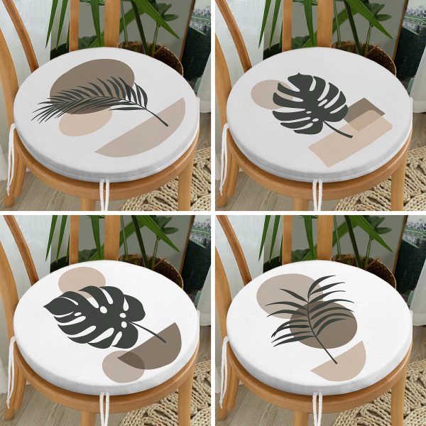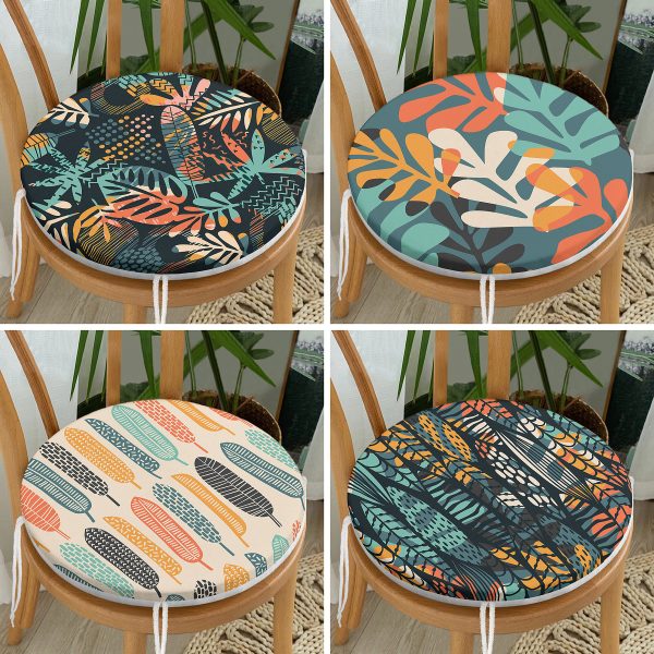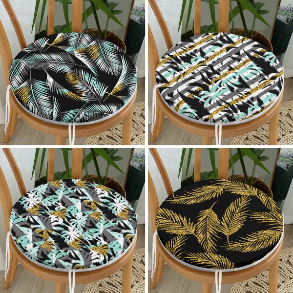4’lü Renkli Tropik Yapraklar Özel Tasarım Yuvarlak Fermuarlı Sandalye Minderi Seti