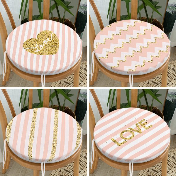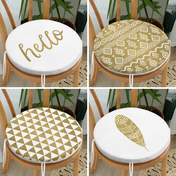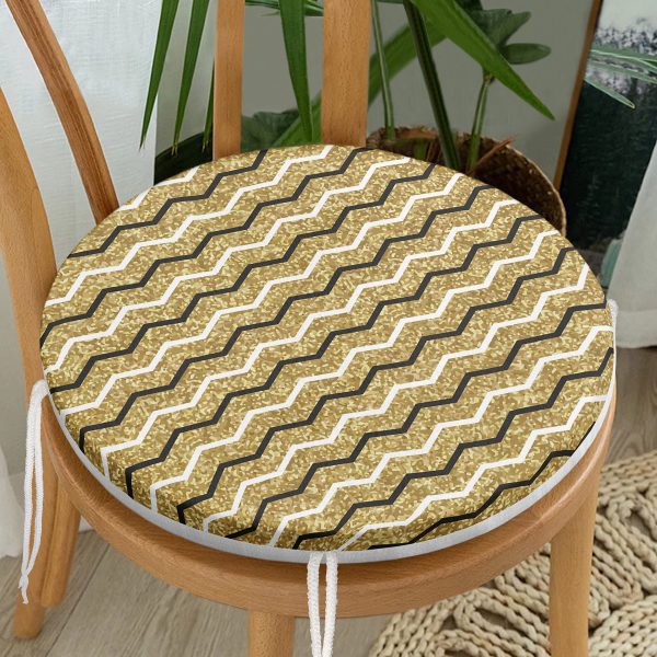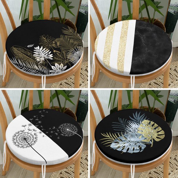 4’lü Siyah Zemin Üzerinde Gold Detaylı Modern Yuvarlak Fermuarlı Sandalye Minderi Seti