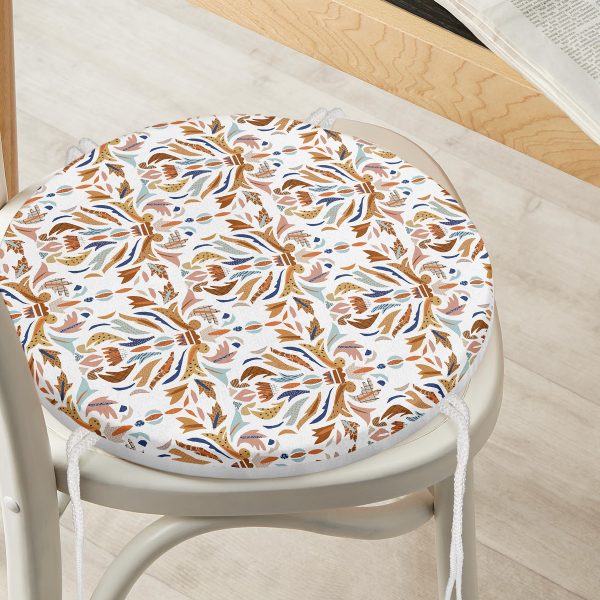 4’lü Bohem Etnik Motifli Vazo Tasarımlı Yuvarlak Fermuarlı Sandalye Minderi Seti