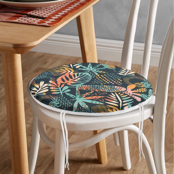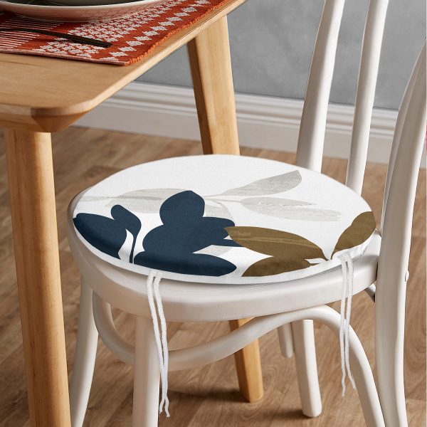 Özel Tasarım Yaprak Motifli Dijital Baskılı Modern Yuvarlak Fermuarlı Sandalye Minderi
