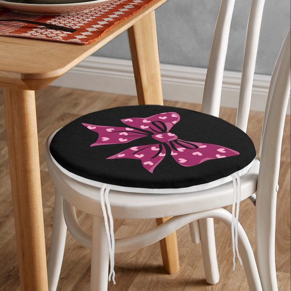 Siyah Zemin Pembe Kurdele Tasarımlı Dijital Baskılı Yuvarlak Fermuarlı Sandalye Minderi