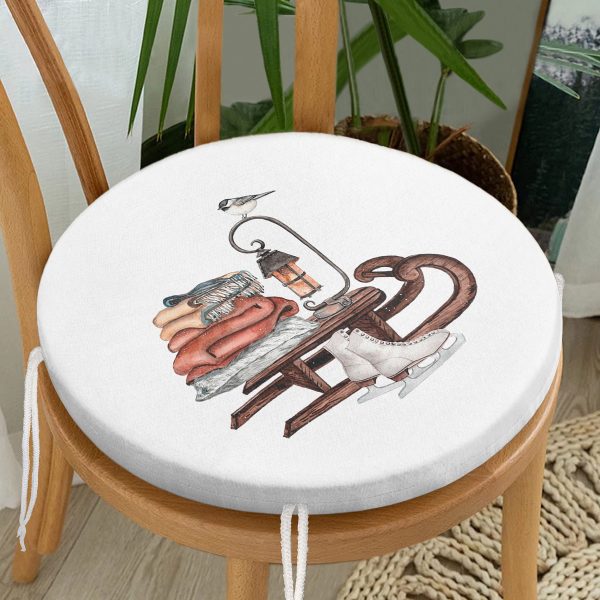 Özel Tasarım Kış Temalı Dijital Baskılı Modern Yuvarlak Fermuarlı Sandalye Minderi