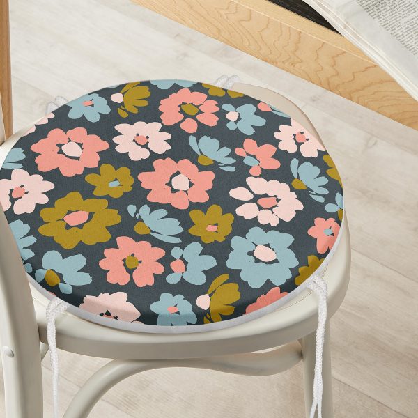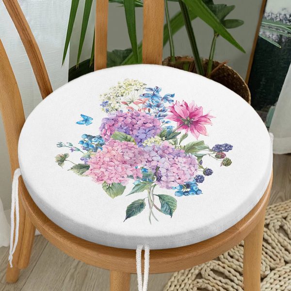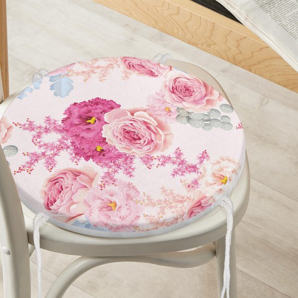 Pudra Çiçekler Temalı Dijital Baskılı Yuvarlak Fermuarlı Sandalye Minderi