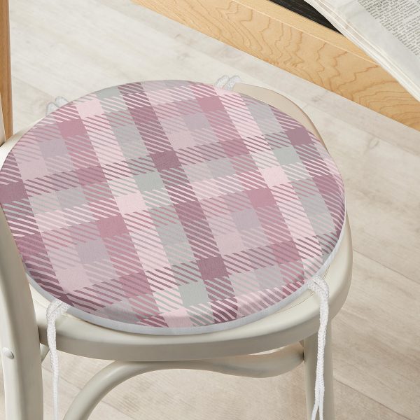 Gri Zeminli Ekose Desenli Yuvarlak Fermuarlı Sandalye Minderi