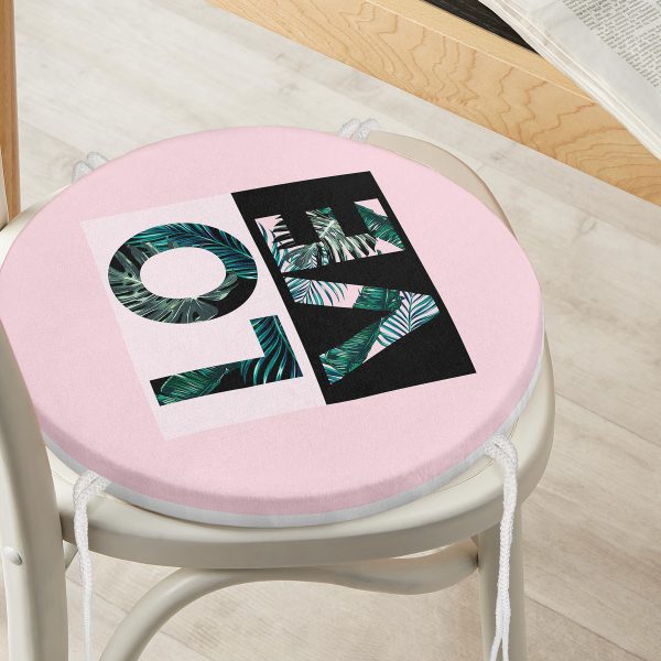 Love Yaprak Detaylı Özel Tasarım Yuvarlak Fermuarlı Sandalye Minderi