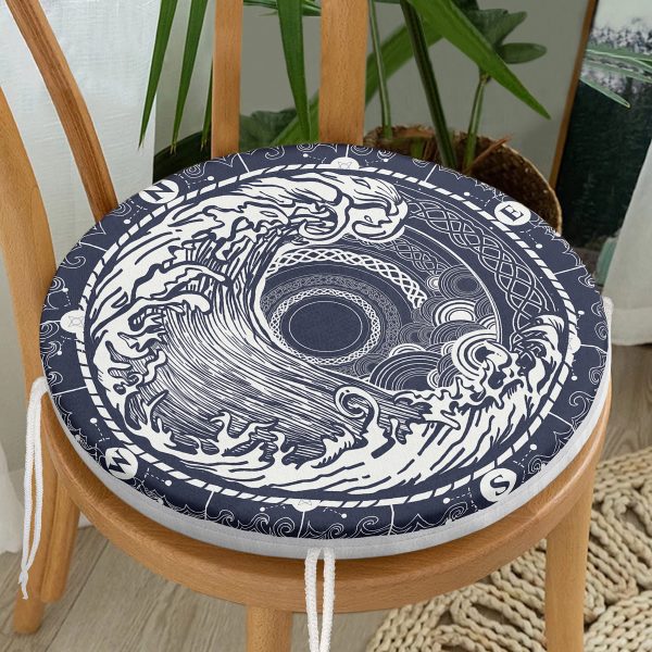 Beyaz Zeminde Lacivert Pusula Motifli Yuvarlak Fermuarlı Sandalye Minderi