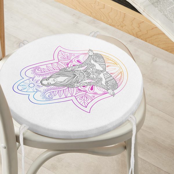 Fatma Ana Eli İçerisinde Yoga Yapan Kadın Desenli Yuvarlak Fermuarlı Sandalye Minderi