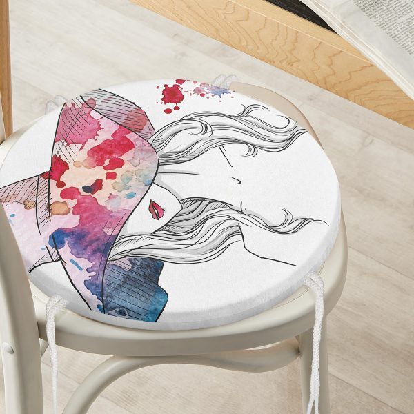 Fashion Girl Şapka Özel Tasarım Dijital Baskılı Yuvarlak Fermuarlı Sandalye Minderi