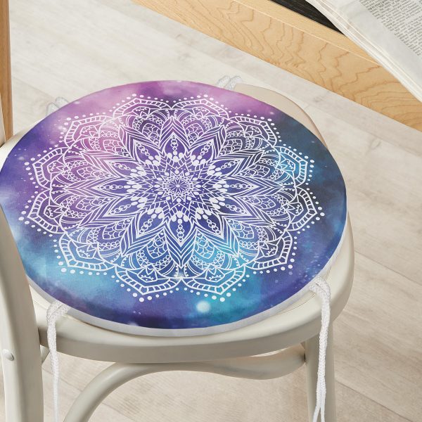Gökkuşağı Zemininde Beyaz Mandala Çizimli Yuvarlak Fermuarlı Sandalye Minderi
