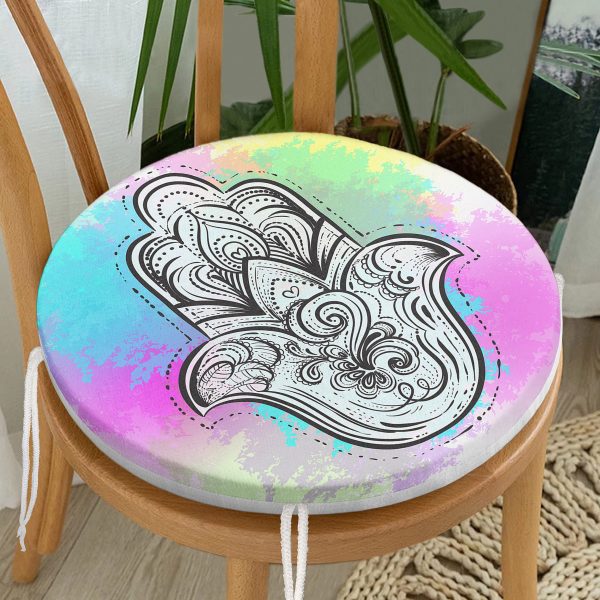 Gökkuşağı Zeminde Fatma Ana Eli Temalı Özel Tasarım Yuvarlak Fermuarlı Sandalye Minderi