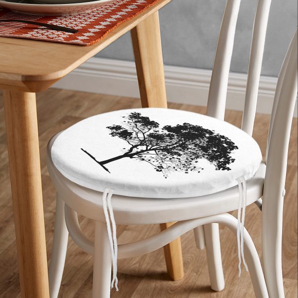 Modern Doğa Çizimli Ağaç Motifli Yuvarlak Fermuarlı Sandalye Minderi
