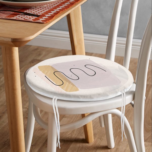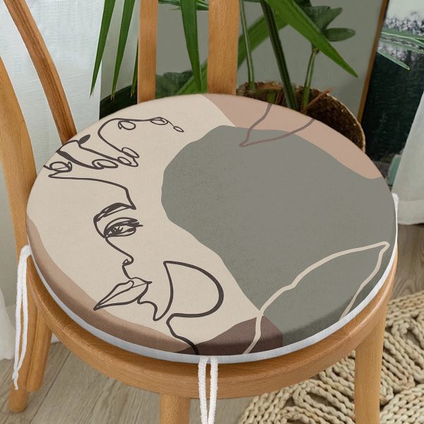 Ekru Zeminde Sanatsal Motifler Dijital Baskılı Modern Yuvarlak Fermuarlı Sandalye Minderi