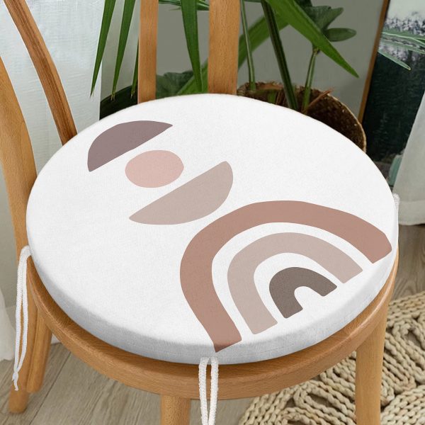 Geometrik Çizimli Soyut Renkler Dijital Baskılı Modern Yuvarlak Fermuarlı Sandalye Minderi
