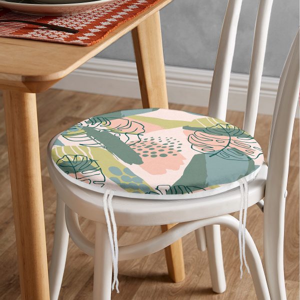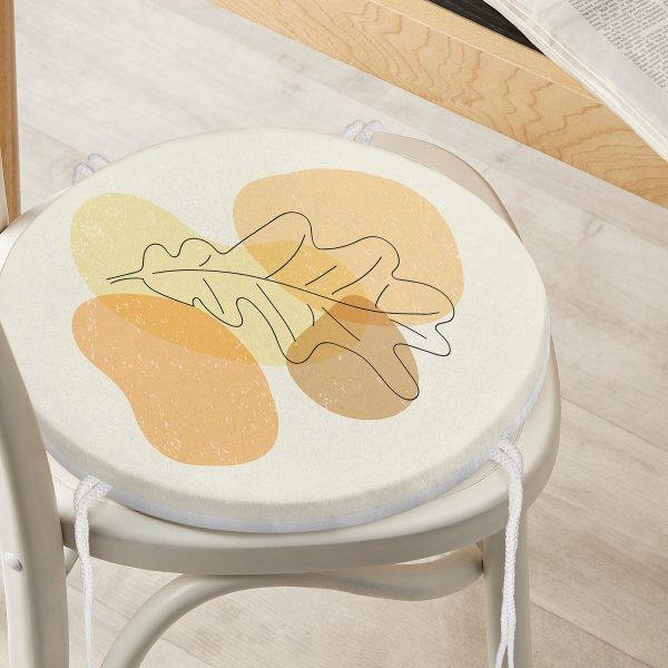 Soft Renkli Zeminde Onedraw Çizimli Yaprak Motifli Dijital Baskılı Modern Yuvarlak Fermuarlı Sandalye Minderi