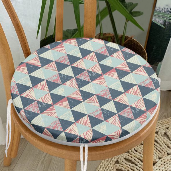 Renkli Zemin Üzerinde Üçgen Desenli Dijital Baskılı Modern Yuvarlak Fermuarlı Sandalye Minderi
