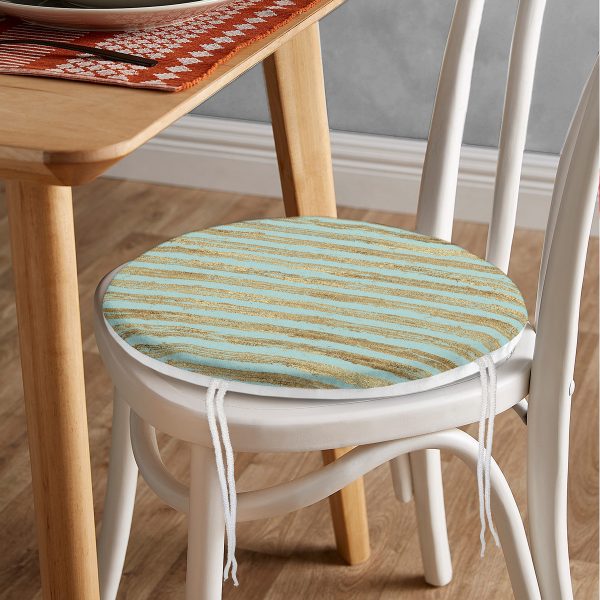 Renkli Zemin Üzerinde Gold Detaylı Yatay Çizgili Dijital Baskılı Modern Yuvarlak Fermuarlı Sandalye Minderi