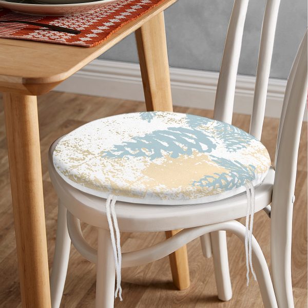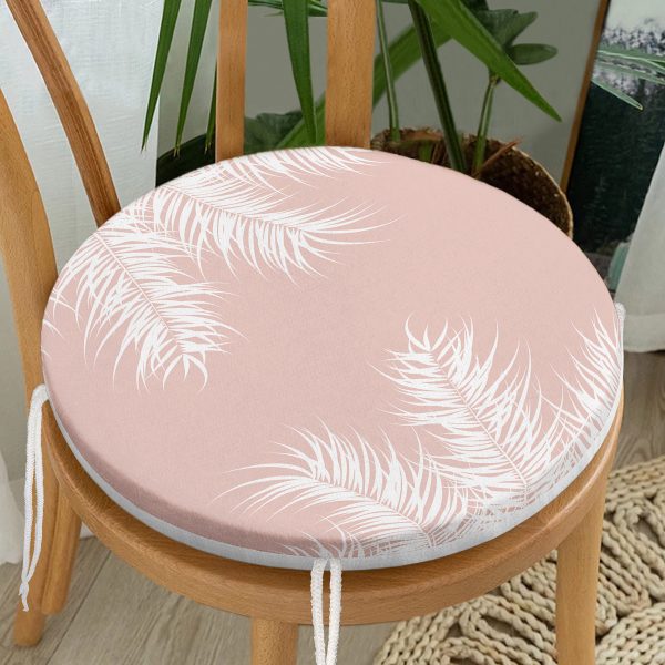Pastel Zemin Üzerinde Beyaz Yaprak Desenli Dijital Baskılı Modern Yuvarlak Fermuarlı Sandalye Minderi