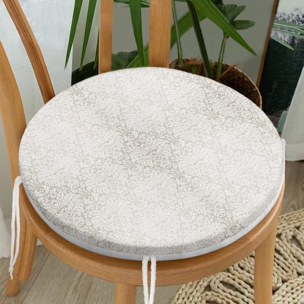 Krem Renkli Damask Motifleri Tasarımlı Yuvarlak Fermuarlı Sandalye Minderi