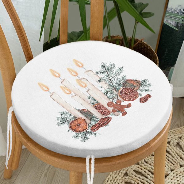 Çam Yapraklı Mum Tasarımlı Dijital Baskılı Modern Yuvarlak Fermuarlı Sandalye Minderi