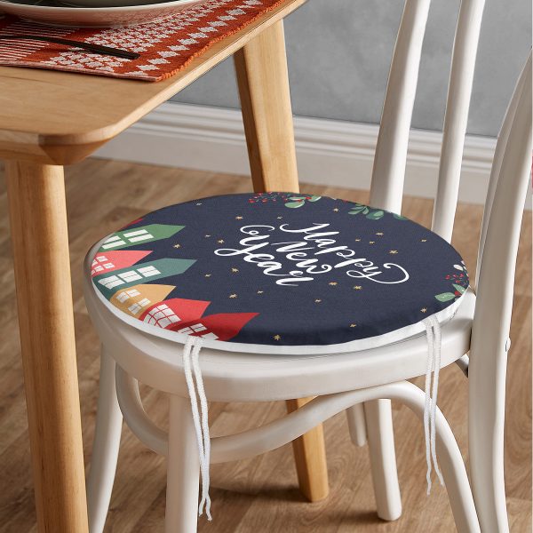 Happy New Year Tasarımlı Dijital Baskılı Yuvarlak Fermuarlı Sandalye Minderi