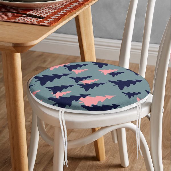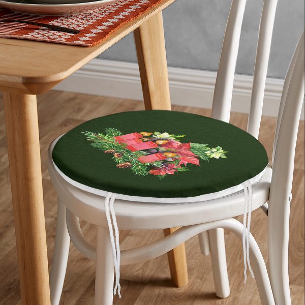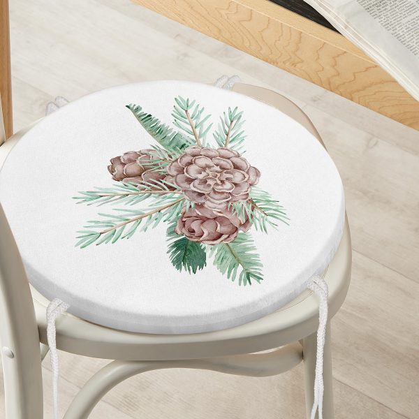 Kozalak Çizimli Cristmas Temalı Dijital Baskılı Yuvarlak Fermuarlı Sandalye Minderi
