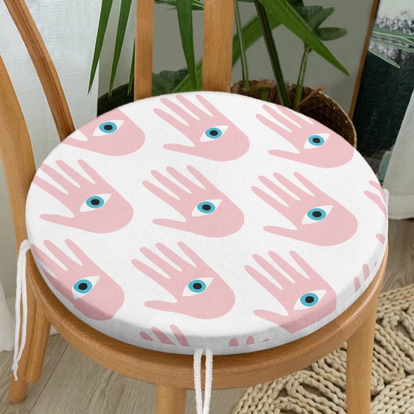 Mistik El İçinde Göz Motifli Dijital Baskılı Modern Yuvarlak Fermuarlı Sandalye Minderi