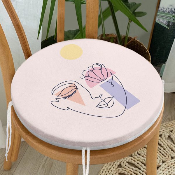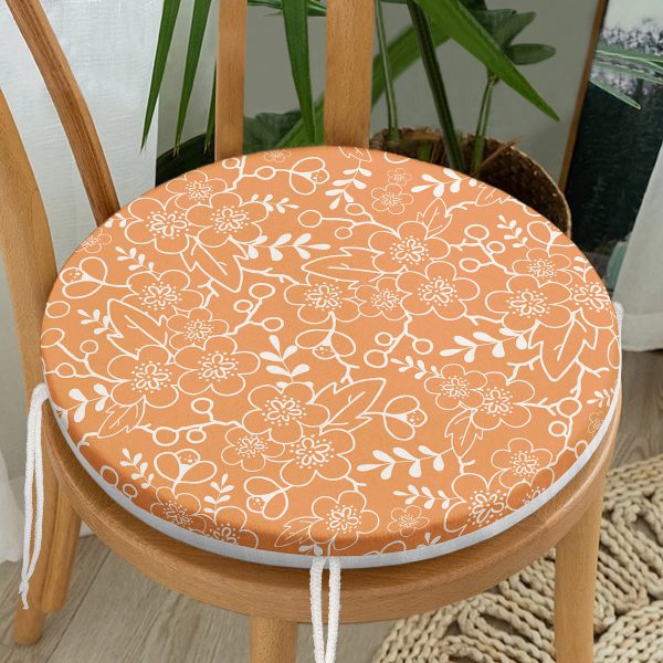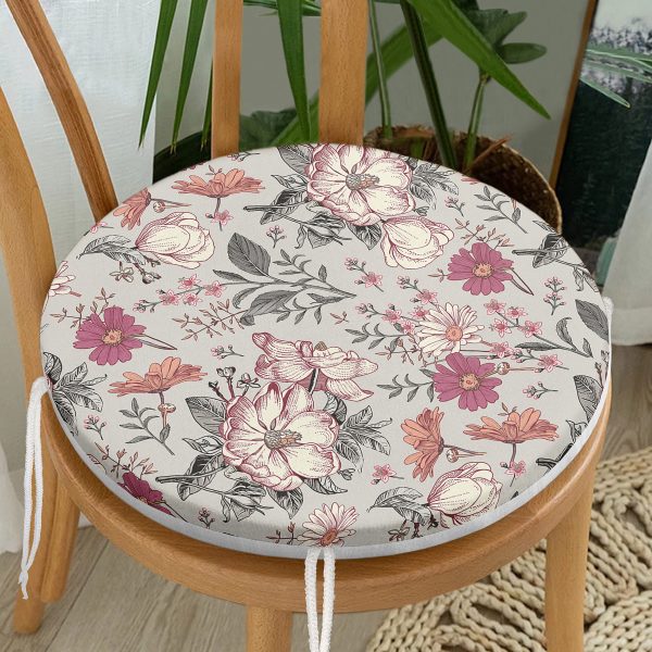 Papatya & Gül Tasarımlı Dijital Baskılı Modern Yuvarlak Fermuarlı Sandalye Minderi