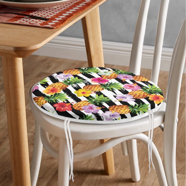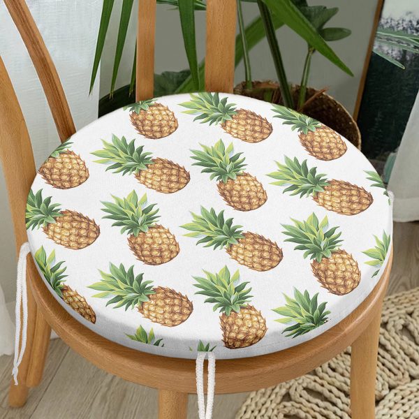 Ananas Desenli Dijital Baskı Yuvarlak Fermuarlı Sandalye Minderi