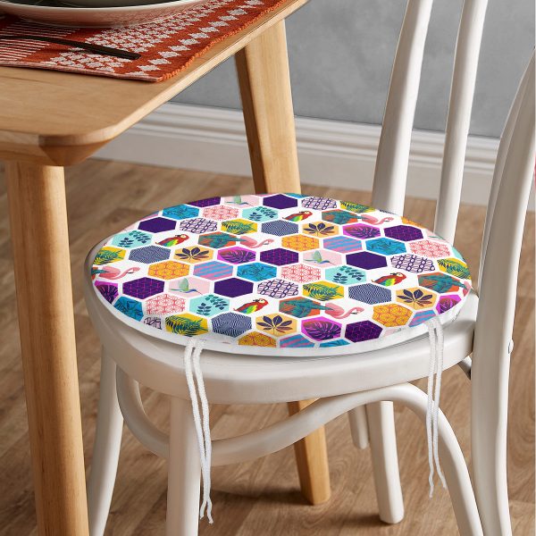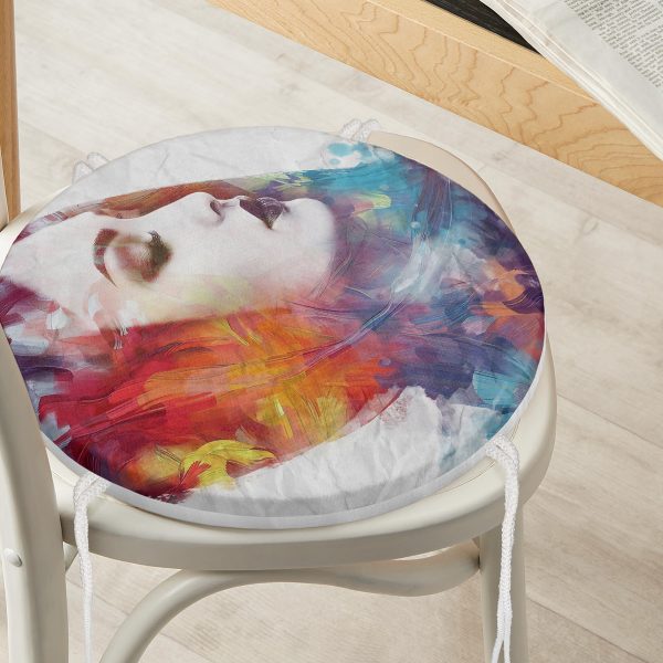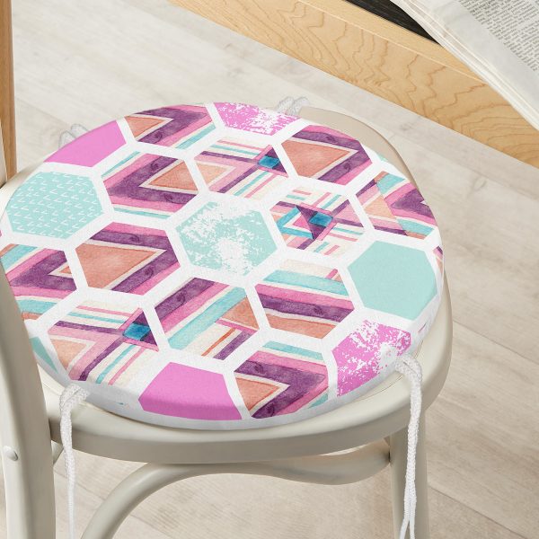Modern Renkli Şekiller Dijital Baskılı Yuvarlak Fermuarlı Sandalye Minderi