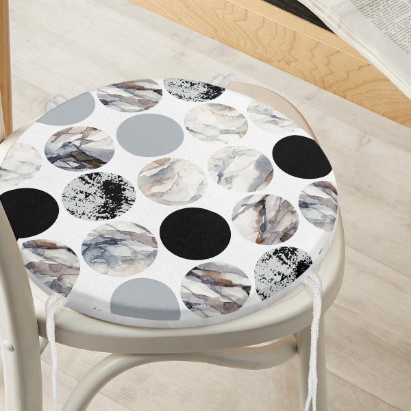 Yuvarlak Desenli Modern Dijital Baskılı Yuvarlak Fermuarlı Sandalye Minderi