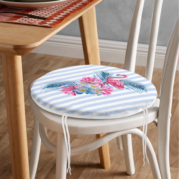 Çizgili Flamingo Zeminli Yuvarlak Fermuarlı Sandalye Minderi