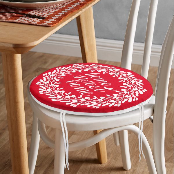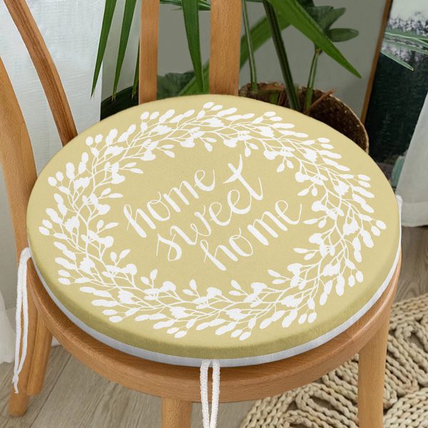 Home Sweet Home Desenli Dijital Baskılı Yuvarlak Fermuarlı Sandalye Minderi