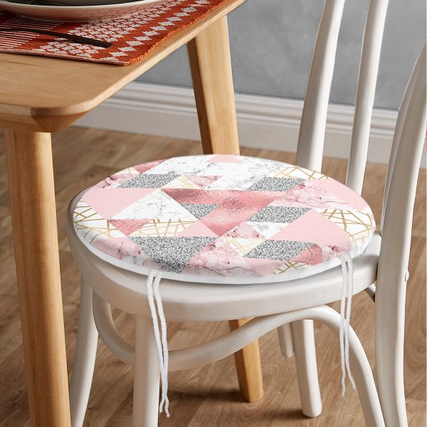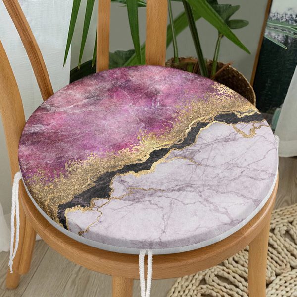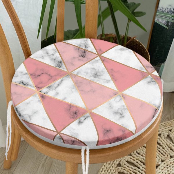 Geometrik Pembe Ve Gri Mermer Motifli Özel Tasarım Yuvarlak Fermuarlı Sandalye Minderi
