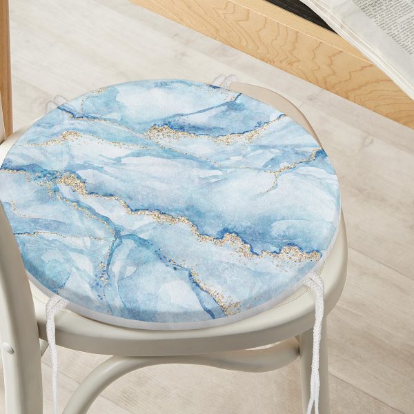 Mavi Renkli Mermer Desenli Dijital Baskılı Yuvarlak Fermuarlı Sandalye Minderi