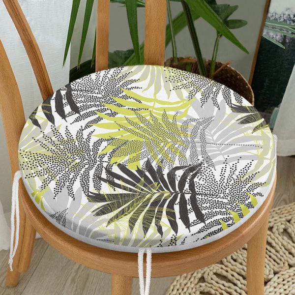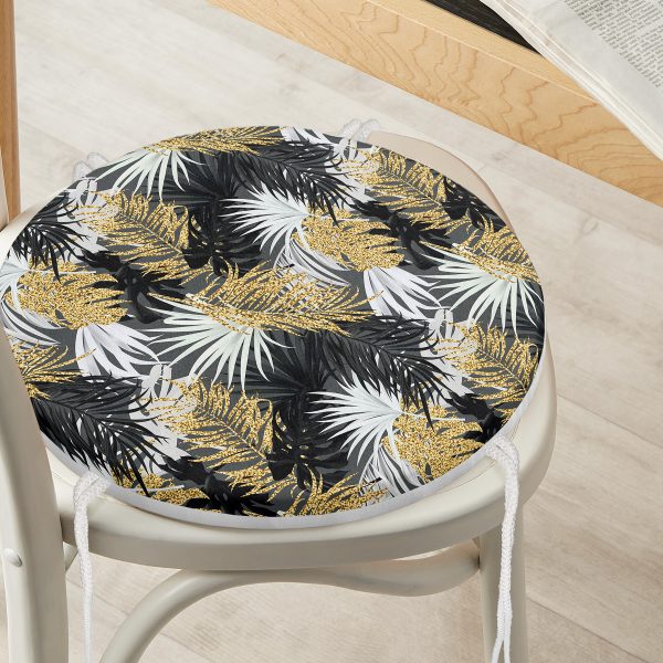 Siyah Zeminde Palmiye Yaprakları Özel Tasarım Yuvarlak Fermuarlı Sandalye Minderi