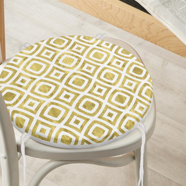 Geometrik Şekilli Altın Detaylı Modern Yuvarlak Fermuarlı Sandalye Minderi