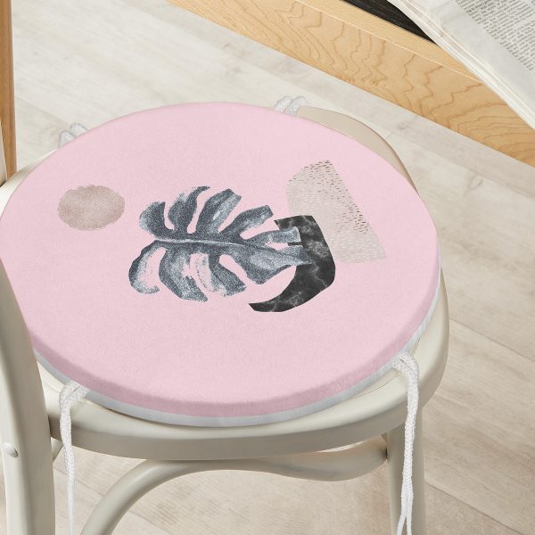 Pembe Zeminde Tropik Yaprak Desen Dijital Baskılı Özel Tasarım Yuvarlak Fermuarlı Sandalye Minderi