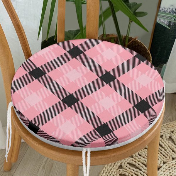 Renkli Pastel Zemin Üzerinde Siyah Ekose Desenli Dijital Baskılı Modern Yuvarlak Fermuarlı Sandalye Minderi