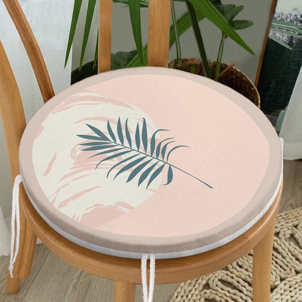 Pastel Zemin Üzerinde Yaprak Desenli Dijital Baskılı Modern Yuvarlak Fermuarlı Sandalye Minderi