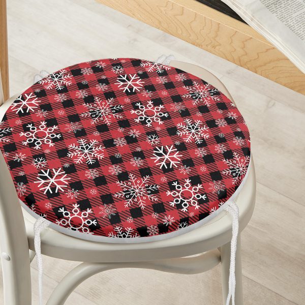 Kırmızı Ekose Desenli Kar tanesi Motifli Dijital Baskılı Modern Yuvarlak Fermuarlı Sandalye Minderi
