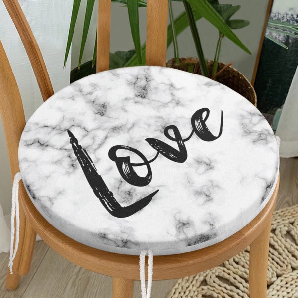 Mermer Zemin Üzerinde Love Yazılı Özel Tasarım Modern Yuvarlak Fermuarlı Sandalye Minderi