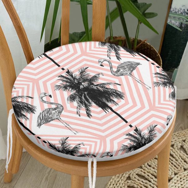 Flamingo Desenli Dijital Baskılı Yuvarlak Fermuarlı Sandalye Minderi